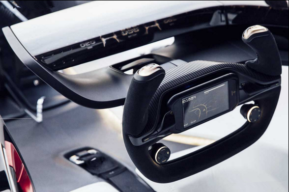 整合气动技术的尾翼,不仅提升方向稳定性,还可以改进空气动力,配有数字屏幕来显示车辆实时电量、驾驶员姓名和赛道位置。两条风洞贯穿车身中心,空气可以穿过车体。这一独特的设计可以减少风阻、提高能效、提升最高速度、冷却电池和电机表面。碳纤维车身最大程度降低风阻,提升能效,同时一体化的车身设计有效保护驾驶员。