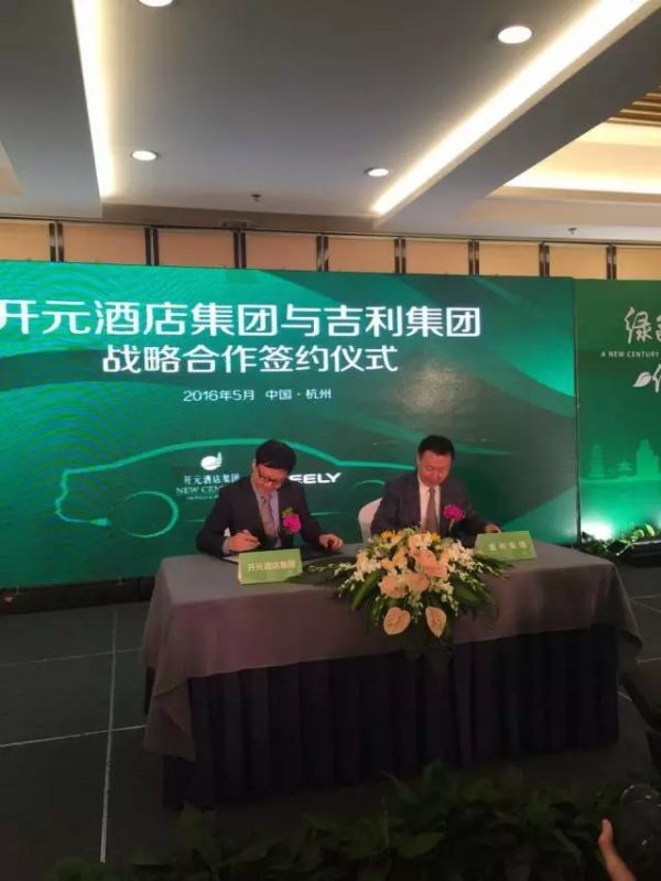 而吉利集团作为民族汽车品牌的领军企业,在践行绿色生态城市建设,亦是先行者。在2015年11月,吉利集团发布了新能源汽车发展战略——“蓝色吉利行动”,开启了吉利集团“发展新能源、服务绿色出行”的新纪元,公司将加快从传统汽车制造商向新能源汽车绿色出行服务商转型,并致力于成为中国领先的新能源汽车出行服务公司。“曹操专车”作为吉利集团战略投资的互联网+新能源专车品牌,“的蓝租车”作为吉利集团旗下的互联网+新能源自驾出行平台,均致力于发展成为未来城市智慧交通主网络的重要组成部分。“曹操专车”和“的蓝租车”,通过主打新能源车型,并建成遍布全城的新能源充电、取车、用车站点网络,为市民提供智能个性、低碳时尚、优质平价、便捷安全的一站式出行解决方案。    此次吉利集团与开元酒店集团战略合作的展开,源于双方对“绿色城市,低碳品质”的共同秉持,相信随着绿色出行服务合作的展开,将共同促进杭州酒店行业的节能减排和绿色城市的建设。   签约仪式上,由开元酒店集团总经理陈妙强、吉利集团副总裁刘金良代表双方企业正式签署了战略合作协议,双方将在酒店指定用车(专车接驾、自驾租车)、新能源用车智慧站点、系统对接、高端客流互导、会员共享、积分打通、品牌互推等层面展开全方位的智慧出行服务合作。吉利集团将在开元旗下每一家酒店内安装10余根充电桩(快慢充结合),总功率250kw-300kw,并配备10-20辆帝豪EV纯电动汽车,组成智慧用车服务站点。贵宾入住开元酒店或去往酒店周边、机场、高铁等站点时,即可享受“曹操专车”贵宾接驾服务,下载“曹操专车”App,即可一键接驾,享受“曹操专车”专职司机的标准化星级服务,免去中途辗转,体验一站式出行。同时酒店宾客通过下载“的蓝租车”App,可选择自由租用,随取即用,无人值守,有人服务,自驾出行,轻松游悦全城,集商务、休闲为一体,享受更智慧更高效更低碳的出行。   吉利集团副总裁刘金良先生表示,此次吉利集团与开元酒店达成战略合作,主要有四个方面的合作价值:一是会员共享,双方将共同构建一个高端商旅宾客的会员生态;二是信息互联,双方将立足开元酒店,依托吉利两大智慧出行服务平台,促成高端生活服务信息的互联互通;三是绿色品质共享,通过合作,让开元酒店星级服务,起于酒店,而不止于酒店;四是升华开元酒店宾至如归的星级服务价值,从入住接驾,酒店星级服务,酒店出行服务,形成一个贵宾用户商旅出行高端服务价值闭环,让贵宾用户出入酒店,轻松游悦全城,不做城市的客人,而做城市的主人。吉利与开元的战略携手,将共筑杭州星级酒店绿色服务名片。   “曹操专车”与“的蓝租车”均以新能源车为主打车型,纯电动汽车,零排放,大大降低了碳排放和尾气污染。同时早在2011年,开元酒店集团已经推出“还木开元”系列举措,将客房消耗用品全部实现节能和可循环利用,同时还涉及环保设计、节能、减排、水资源等领域的保护,一改五星酒店给人的“奢华”印象,成为业内环保标杆。而随着《巴黎协定》的签署和G20峰会的临近,吉利与开元的此次合作还有着更深层次的意义。   2015年11月15日,随着习近平主席在二十国领导人峰会上的宣布,杭州接过安塔利亚的接力棒,开始全力筹备2016年G20峰会。见证20国领导人巅峰聚首,直接聆听世界级对话,对杭州来说,这是一份荣耀,更意味着一份沉甸甸的责任。