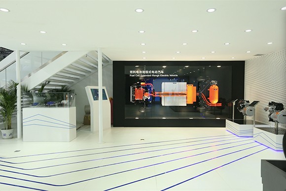 北汽新能源所展出的燃料电池具有氢气加注时间短、完全的零污染、能量密度高等特点。
