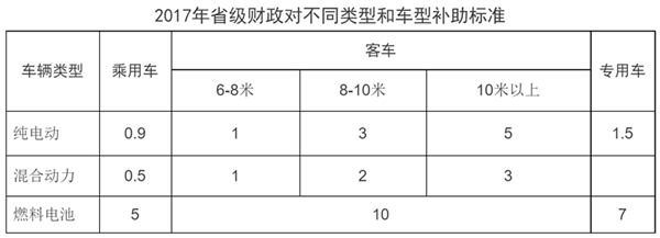 办法还强调,2017年度将根据按各设区市上报的新能源汽车年度推广计划预拨部分省级补助资金,由各设区市根据本地区新能源汽车实际推广和使用情况及当地补助标准统筹拨付给购买者。2018年上半年,对2017年纳入各设区市(包括所辖的县(市)、区)财政补助范围的新能源汽车按本通知规定标准进行省级财政补助资金清算,多拨的结转下年使用,少拨的予以补足。