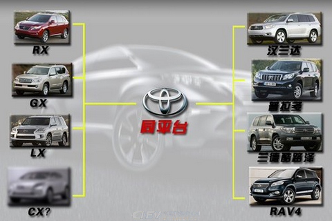 目前雷克萨斯在国内销售的SUV-RX系列、GX460和LX570车型分别与汉兰达、新普拉多和兰德酷路泽采用相同的技术平台。这类优秀平台技术之间的共用关系不仅有利于汽车市场的发展,而且还可以有效的为公司降低成本。雷克萨斯入门级SUV将会与丰田RAV4使用共同平台并搭载CT200h的动力单元。
