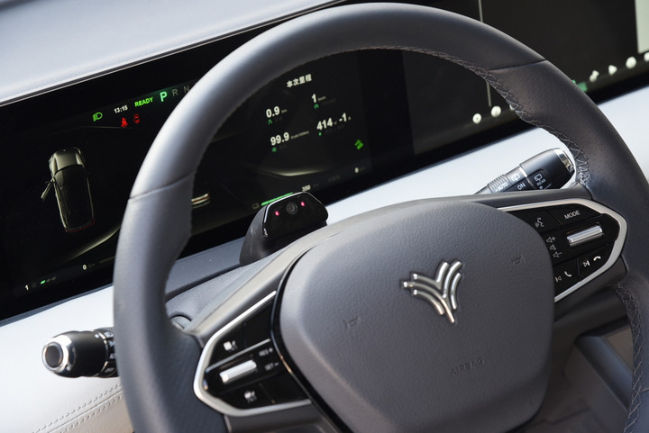 这其中,全球首创量产的“透明”A柱无疑最为引人注目。根据官方介绍,“透明”A柱是PIVOT2.0智能座舱的一部分,基于自主研发的AR-View系统打造。这套系统对车载芯片的算力有很大挑战,但其工作逻辑听起来清晰易懂:基础硬件除了A柱上的四块柔性屏,还有自主研发的智能软件算法、外后视镜上的摄像头和方向盘后的驾驶员监控摄像头。从实际体验而言,“透明”A 柱确实可以极大的扩展视野。首先,画面亮度适中,刷新率极高,即使有飞驰而过的电动自行车也可以清晰显示。其次,车身前侧的盲区被极大减小了。这可以很大程度上避免一些低速剐蹭,也方便了泊车。在狭窄路段简单开过几圈之后,你很容易将“透明”A柱划归到酷而有用的一类科技配置中。