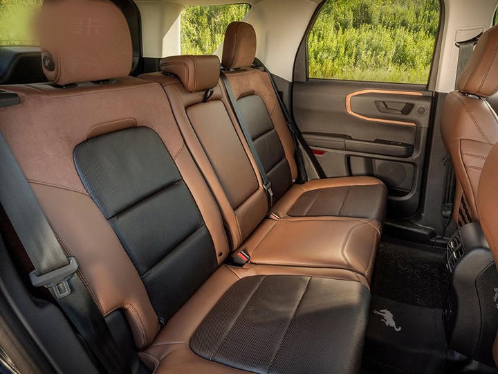 内饰方面,新车整体设计延续了外观硬朗的风格,大尺寸中控屏的加入为这个“硬汉”增添了一丝科技,而中控屏上部的三把锁按键则与奔驰G级有异曲同工之妙。新车空调出风口同样采用了方正造型,这在硬派越野SUV身上很常见。此外,新车的大部分按键以及挡把都采用了比较常规的设计。配置方面,新车采用全液晶仪表和12英寸中控屏,内部集成了SYNC 4信息娱乐系统。此外,新车还标配带有侧倾稳定控制的AdvanceTrac系统和拖车摆动控制系统,并可选装360度全景影像和福特智行驾驶辅助系统。另外,部分Bronco车型还采用了集成排水孔的可冲洗橡胶地板,并加入防霉变的乙烯座椅面料,同时主控按钮都有硅胶保护,防止水和泥沙侵入,方便清洁。