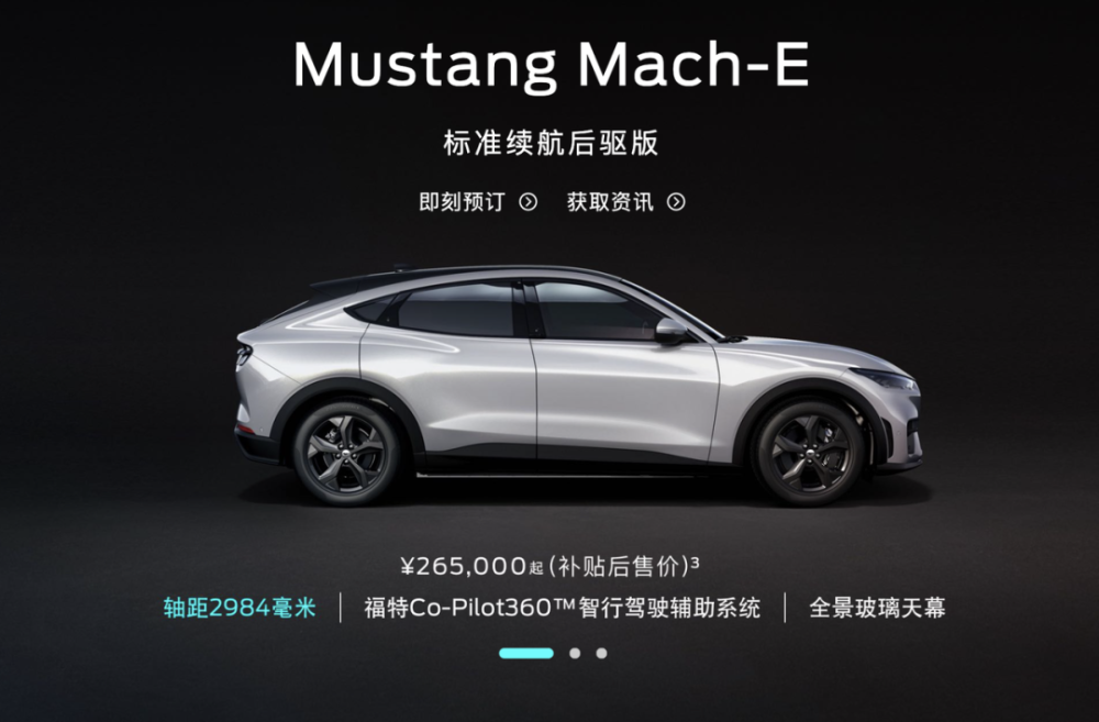 国产后的Mustang Mach-E在Model Y标准续航版出来之前,26.5万元的起售价格相比Model Y有着的巨大优势,但当27.6万的Model Y一经发布,感觉Mustang Mach-E瞬间不香了。