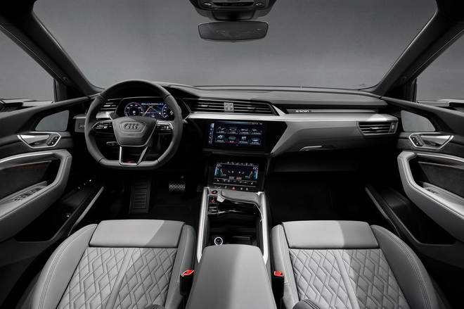 内饰方面,保留e-tron现有中控设计,与现款e-tron主要区别集中体现在软装方面,更加突出运动风格,比如菱形格衍线的座垫与椅背上方压制的“S”标识等。新车采用空气悬架系统,最大调整高度可达3英寸。S版e-tron轮毂比普通车型宽两英寸,这就需要塑料轮拱的扩展。标配20英寸轮胎,但可升级至21或22英寸的夏季轮胎。
