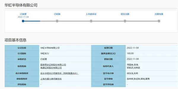 11月7日,上交所官网所发公告表示:已受理华虹半导体有限公司的科创板IPO申请。