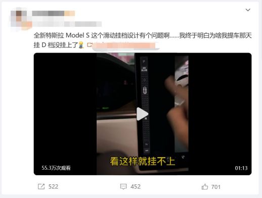 许多体验过Model S Plaid的人都有同样的感受,那就是“不知道有没有挂上挡”。殊不知车机对“滑动”的手势感知有一定的要求,车主手快了,系统识别失败,也没有强提示,你还得仔细听挂挡的声音确认情况。