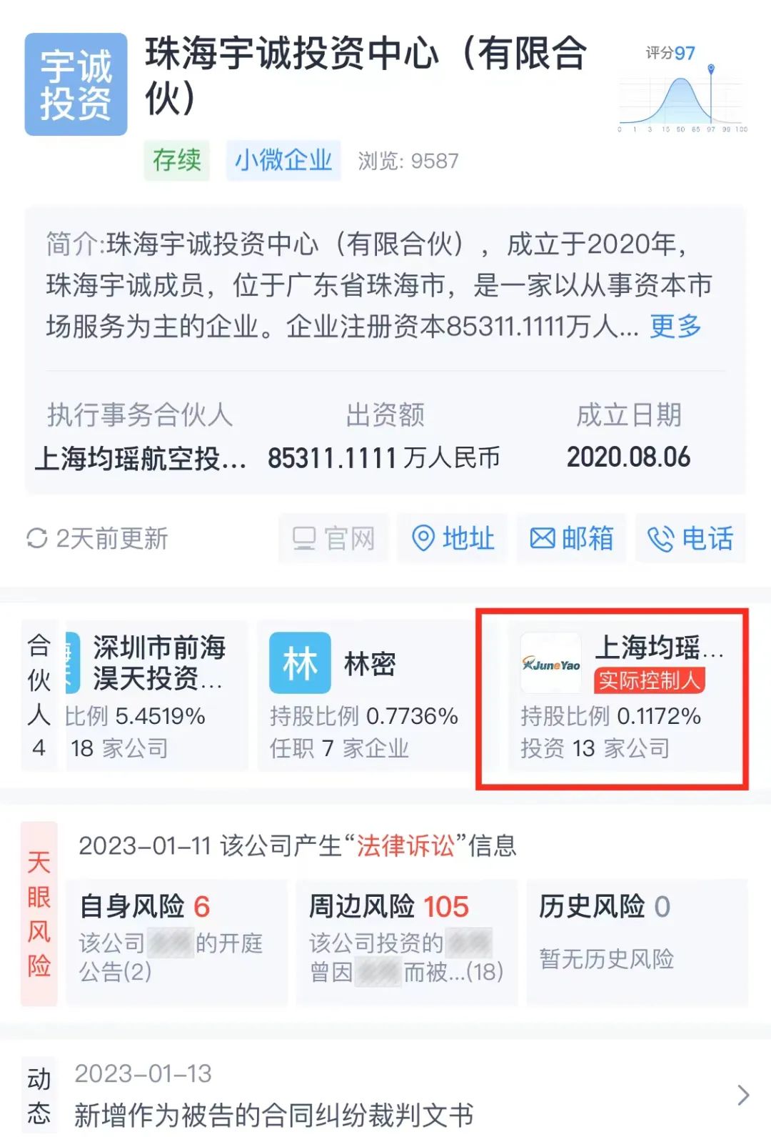 随着多位创始股东退出,2021-2022年,云度汽车基本处在停产状态。直到2023年2月21日,吉祥航空母公司均瑶集团宣布入主云度汽车,再次把云度汽车拉回到公众视野。天眼查数据显示,接盘云度汽车的珠海宇诚投资中心(有限合伙),其背后的实际控制人正是均瑶集团。