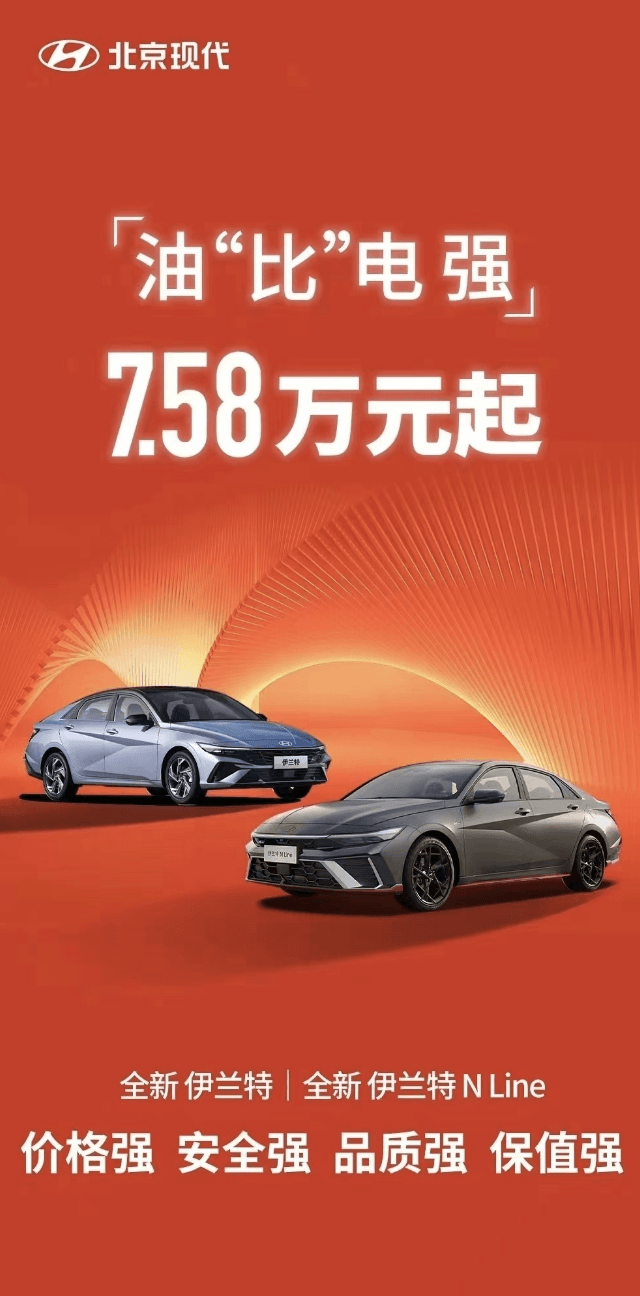 而现代则是第一个正面回击油电大战的车企,全新伊兰特起售价从9.98万降至7.58万,并喊出“油比电强”的口号作为反击。