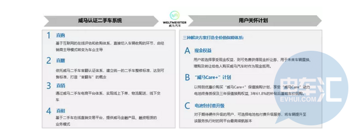 面对这一窘境,也有一些车企在这方面进行了相应探索。如小鹏汽车推出的3年6折置换政策——即小鹏G3 2019款车主3年后换购任意一款小鹏在售车型,可以将其以60%的购车价进行置换;而威马汽车则是发布了官方认知二手车品牌,采用“直购、直销、直租等模式贯穿二手车整个生命周期,构建威马再营销生态”的方式,降低消费者换车成本,提升产品的保值率;腾势汽车也发布了认证二手车品牌——“心安二手车”,通过品牌认证的形式,搭建全面的二手车检测和销售服务,提升腾势的保值率。